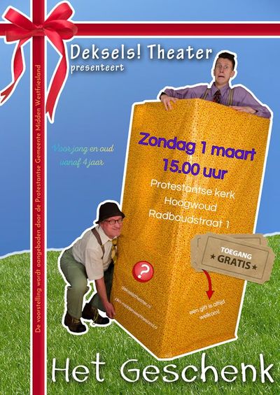 Deksels!Theater komt naar de kerk met de voorstelling "Het Geschenk" . Een hilarische voorstelling met een vleugje acrobatiek.