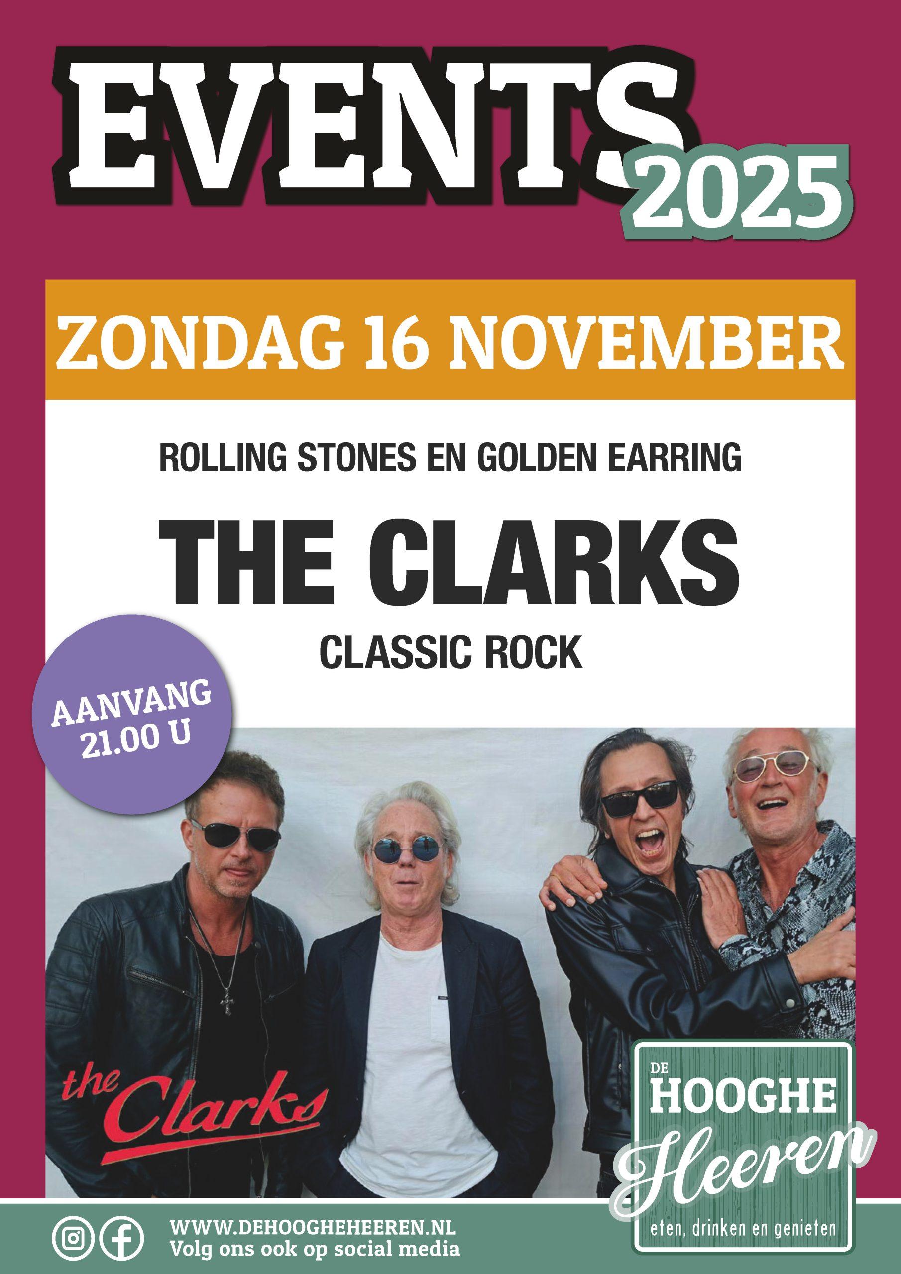 The Clarks zullen op 16 november het podium van de Hooghe Heeren samen betreden met Cesar Zuiderwijk van de originele Golden Earring! Een evenement wa...